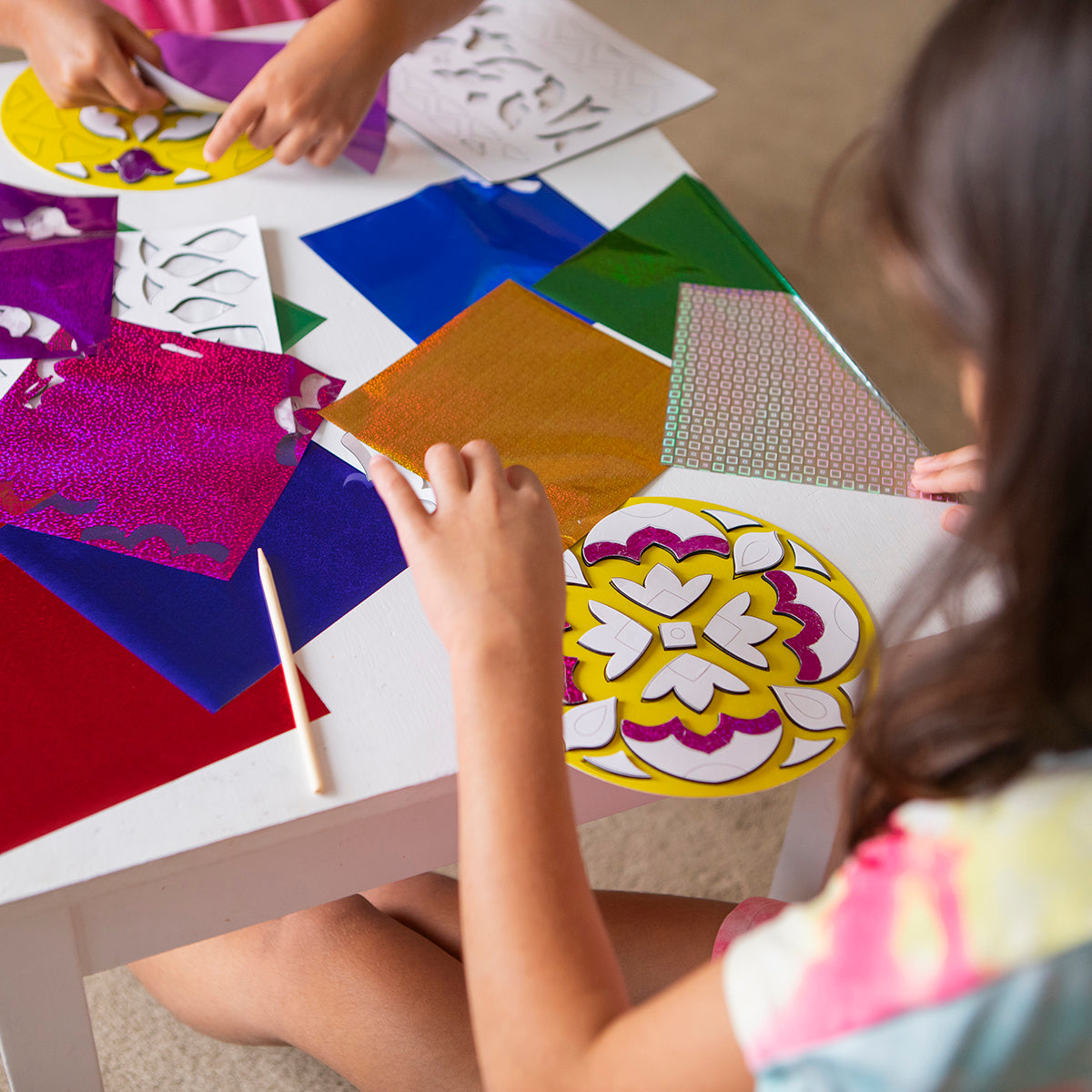 Simply peel and press the foil to the design boards to create stunning Rangoli Mandala masterpieces. This kit is perfect for developing fine motor skills and encouraging artistic expression in a fun, interactive way. Great gift for kids on Birthdays, and holidays such as Holi, Diwali, Easter, Hanukkah, and Christmas and is also an excellent DIY craft that can be used for summer camps, schools, or craft parties.