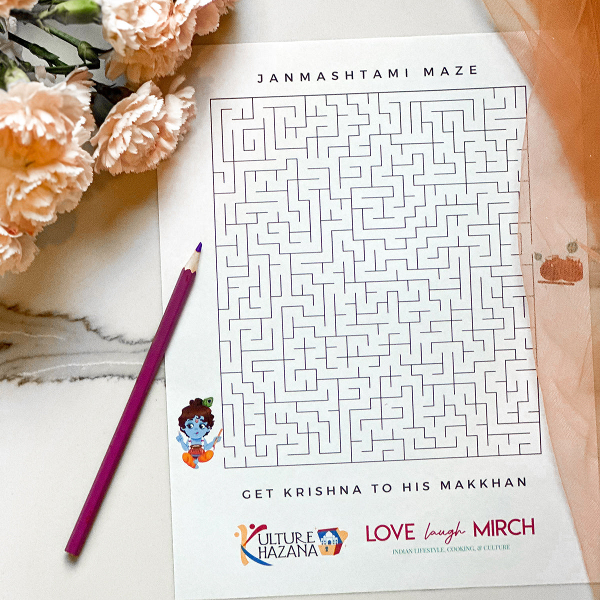 ๐ Join Lord Krishna on an exciting adventure this Janmashtami with our FREE Krishna Janmashtami Maze Printable created by Love Laugh Mirch and Kulture Khazana! ๐