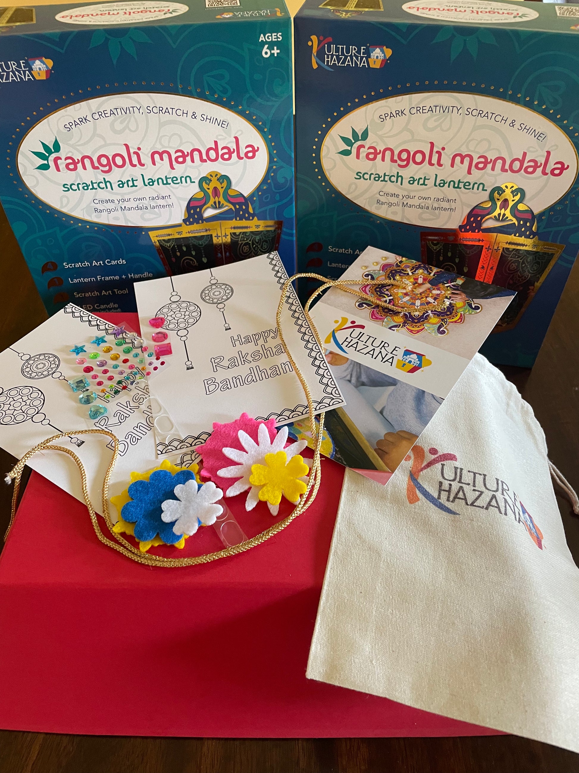 In this bundle, you will receive 2 Make Your Own Rakhi Kits and 2 Scratch Art Lanterns - a perfect way to celebrate together with your loved ones.